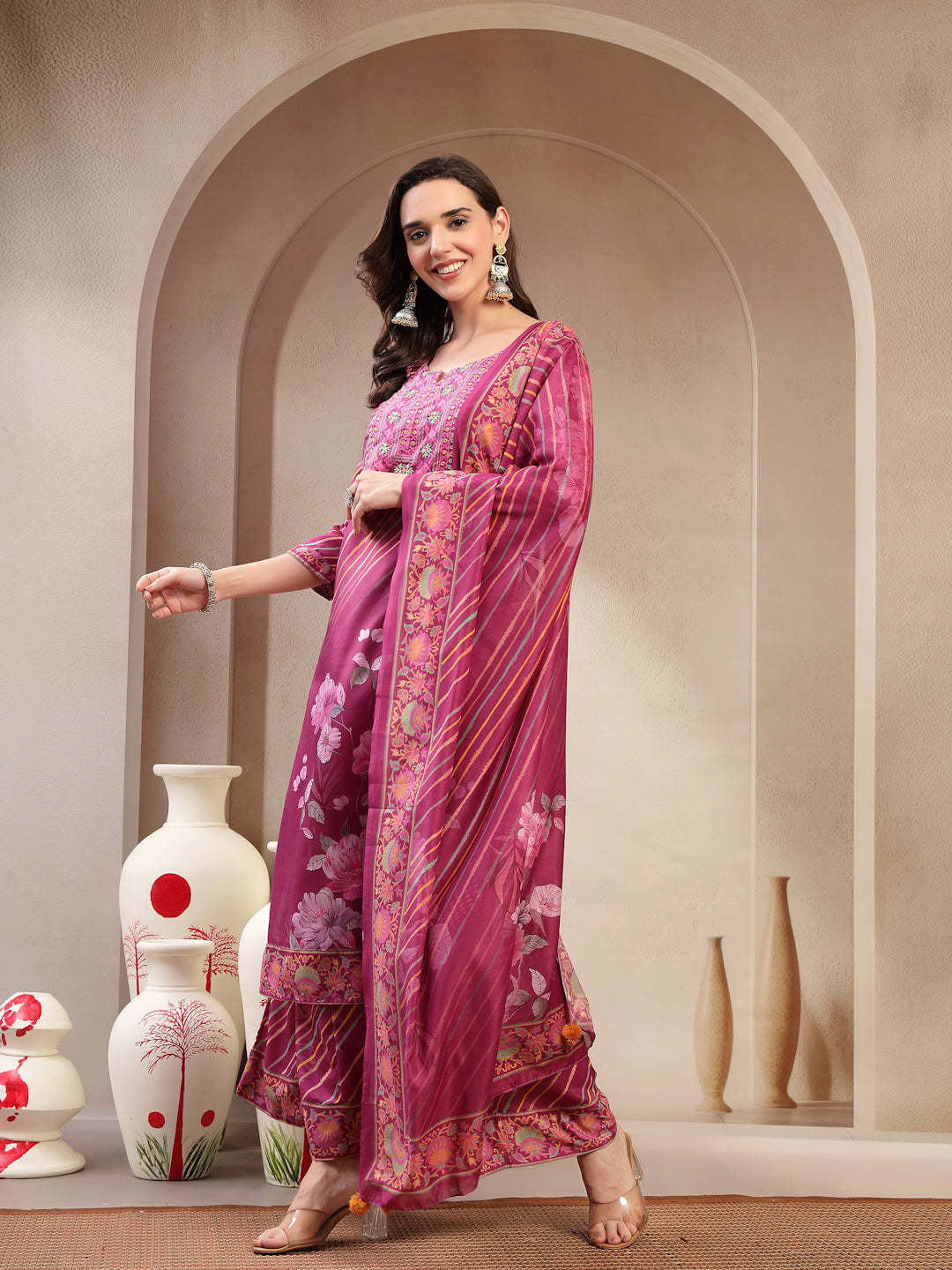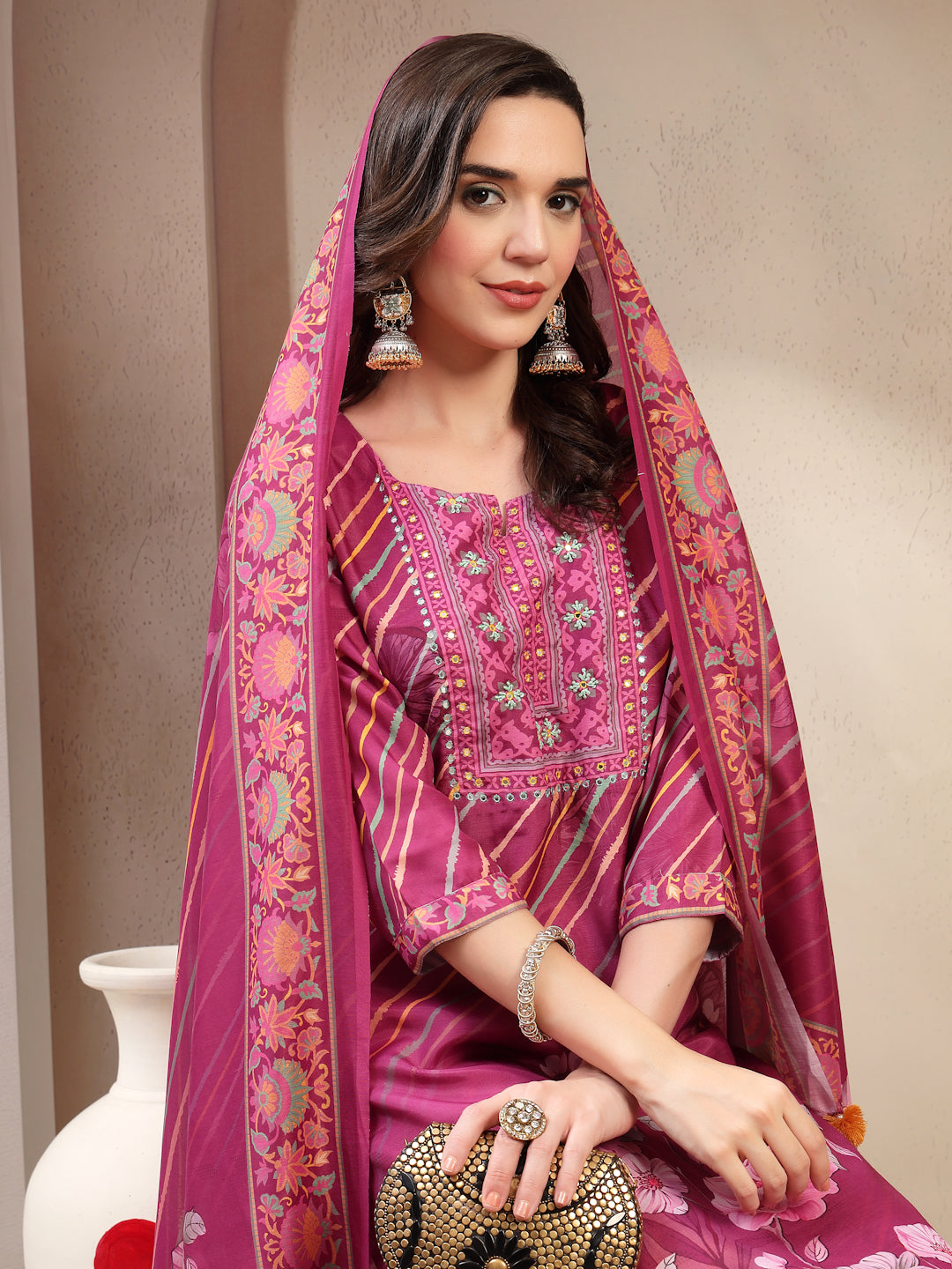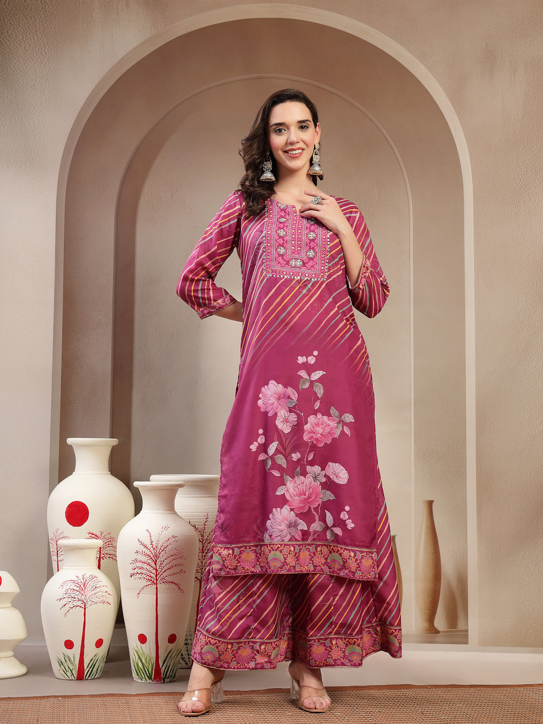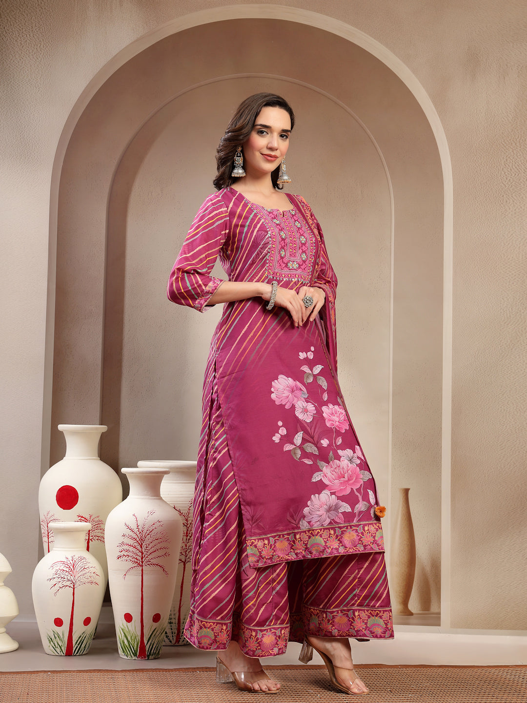 Elegant Purple Lehriya Printed Kurta Palazzo & Dupatta Set